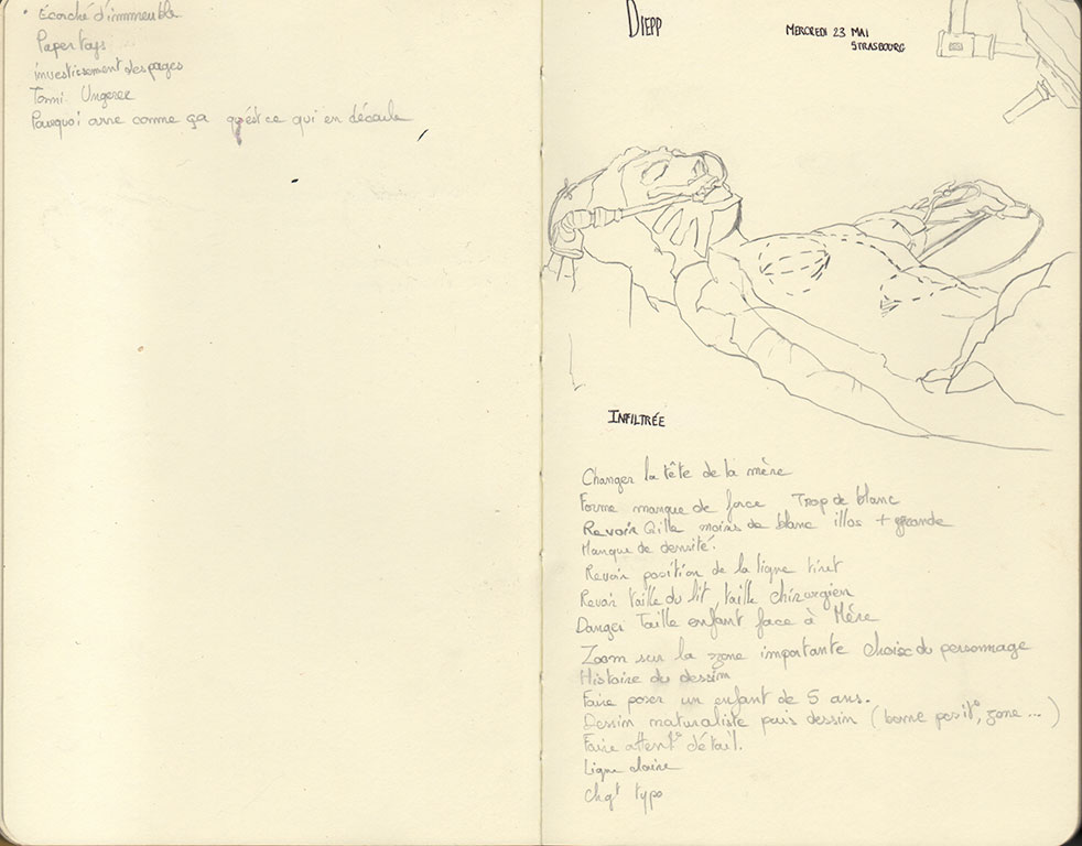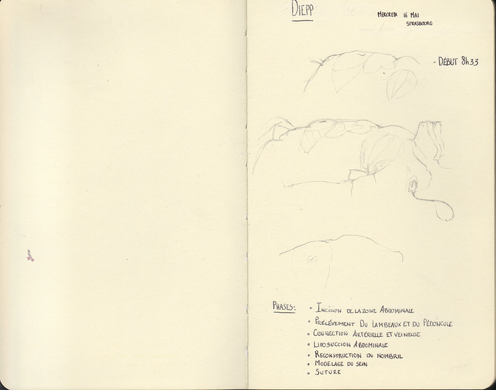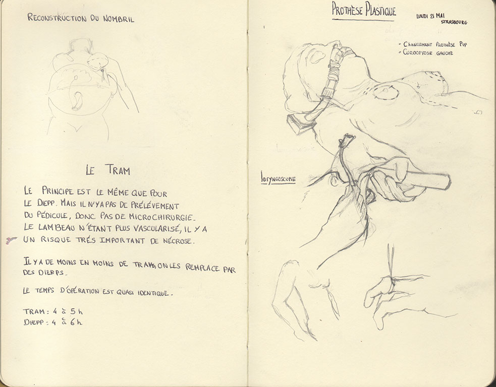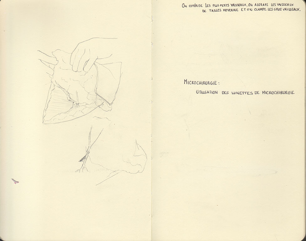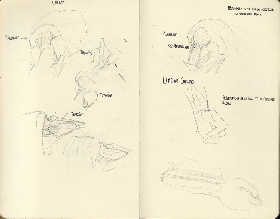 En 2010, j'ai intégré l'école supérieure des arts décoratifs de Strasbourg dans l'atelier de Didactique visuelle. J'y ai suivi l'option illustration médicale et scientifique qui offre la possibilité du double cursus entre les arts décoratifs et la faculté de médecine de Strasbourg. J'ai pu effectuer entre mai et juillet 2012 deux stages, l'un au pôle de chirurgie reconstructrice et plastique de l'hôpital de Strasbourg sous la direction du professeur C. Bruant-Rodier et l'autre à l'IRCAD. Ces stages m'ont permis d'assister à diverses interventions chirurgicales et de réaliser différents supports à l'aide des prises de effectuées.