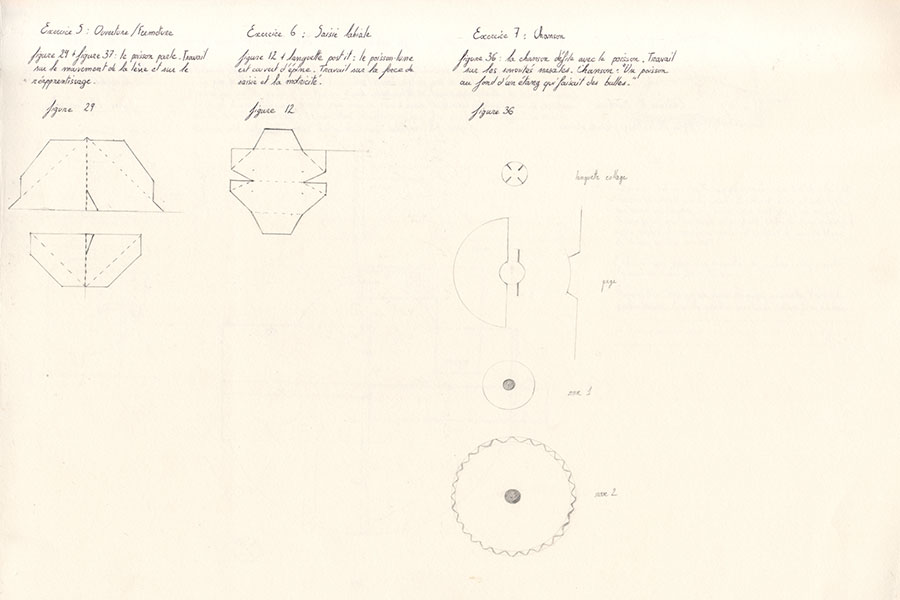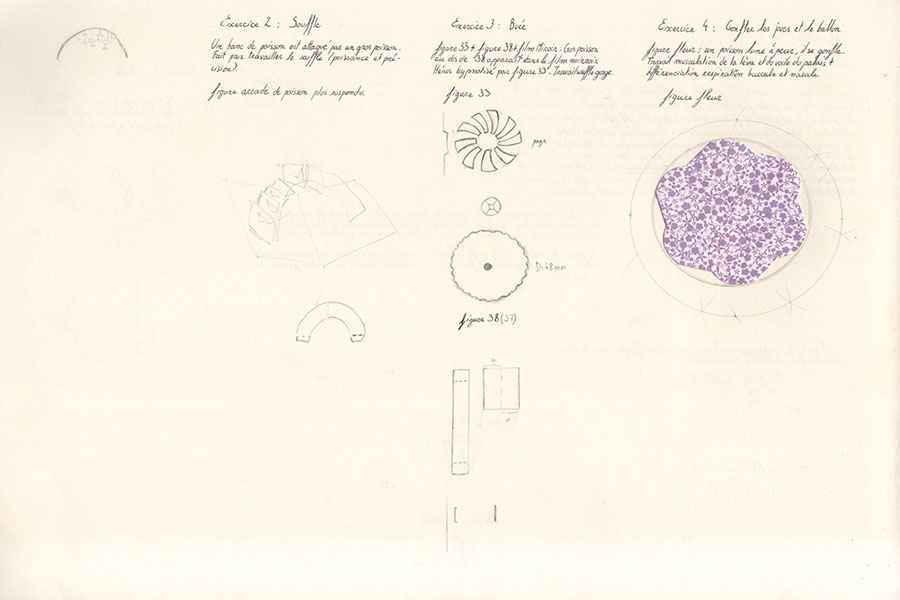 Chaque double page comporte un exercice de rééducation. On trouve :