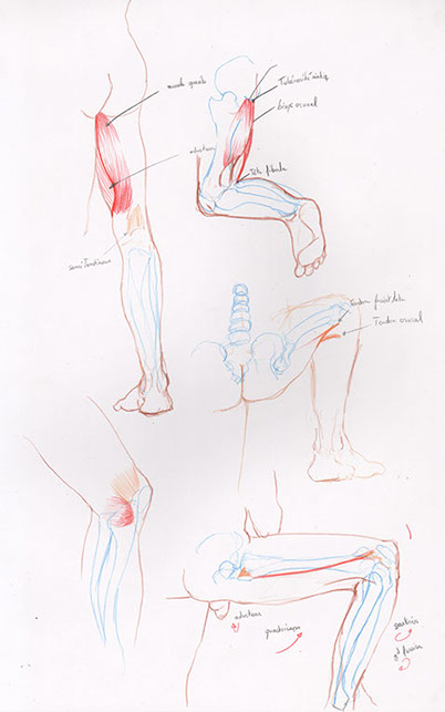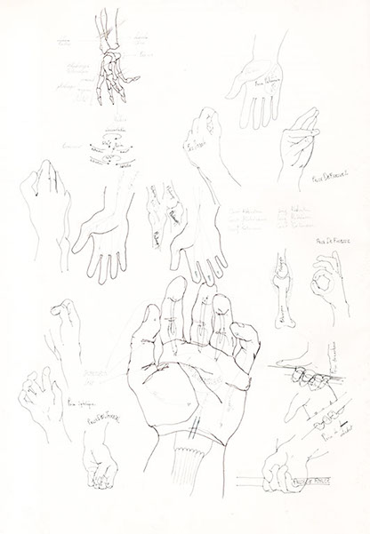 Ces travaux sont des études du corps et de l'anatomie humaine à partir de modèles vivants nus ; Ils ont été réalisés entre 2010 et 2012. Les supports et techniques étant libres, la majorité des travaux présents sont faits aux feutres ou aux crayons de couleur.