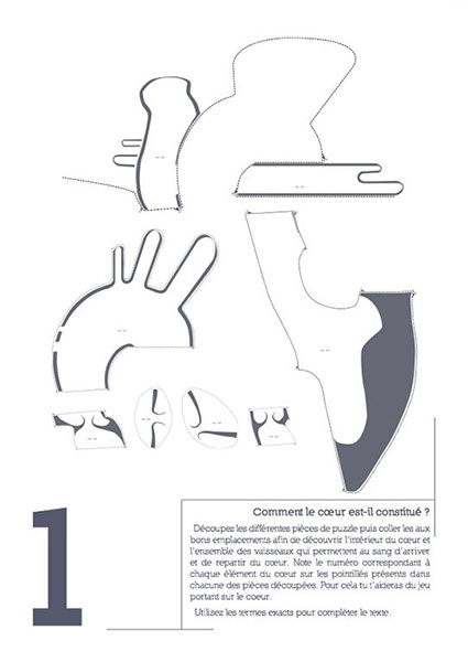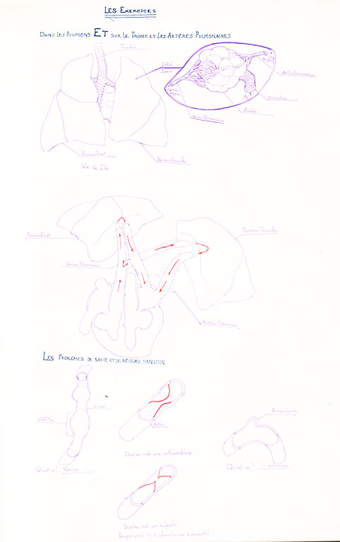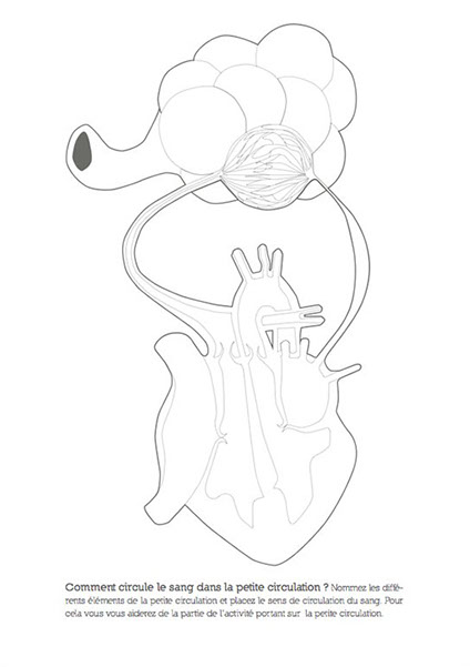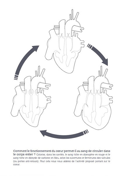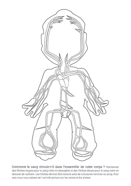 La troisième fiche porte sur le sens du sang artériel et veineux dans le corps à l'aide de deux couleurs et de flèches ;