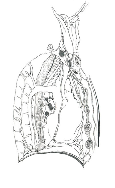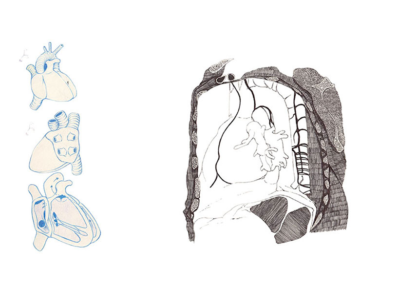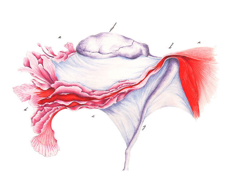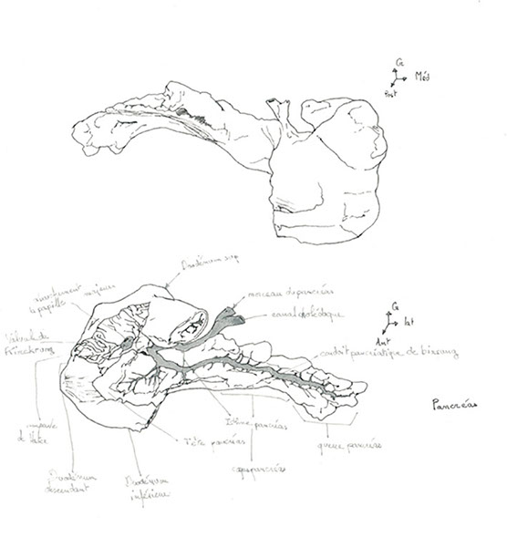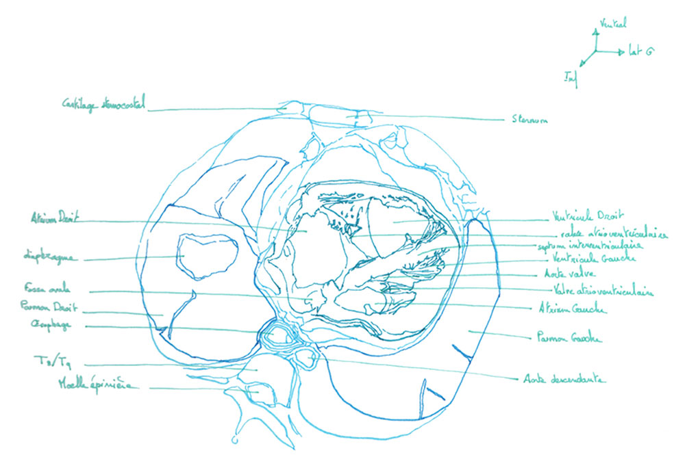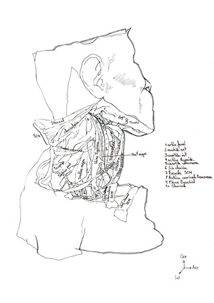 Ces coupes d'anatomie sont des études réalisées entre 2010 et 2012 dans le cadre de la spécialité illustration médicale et scien-tifique de l'ESADS associée à la faculté de médecine de Strasbourg.