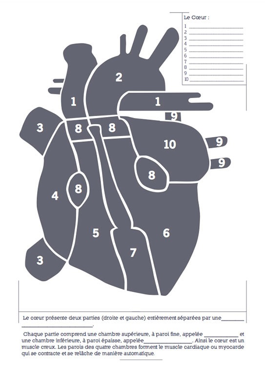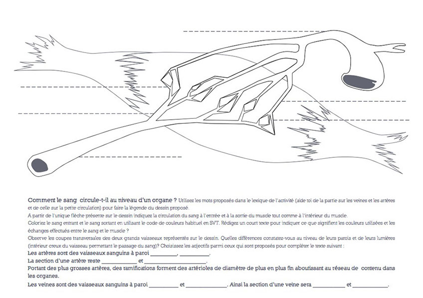 La quatrième fiche aborde la circulation dans les organes et les muscles à l'aide d'un texte à trou et d'une légende