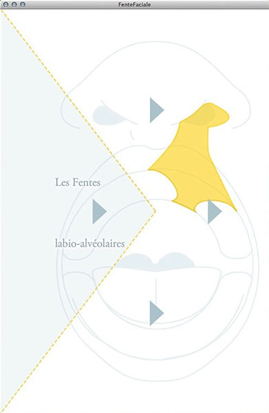 Cette application sert principalement de support d'information pour le patient sur les traitements associés aux différents types de fentes faciales. Elle a été conçue dans le but d'informer les familles lors des rendez-vous pré-opératoires. Les informations ont été recueillies au centre de compétence de Hautepierre lors d'un stage sous la direction du Pr Catherine Bruant-Rodier.